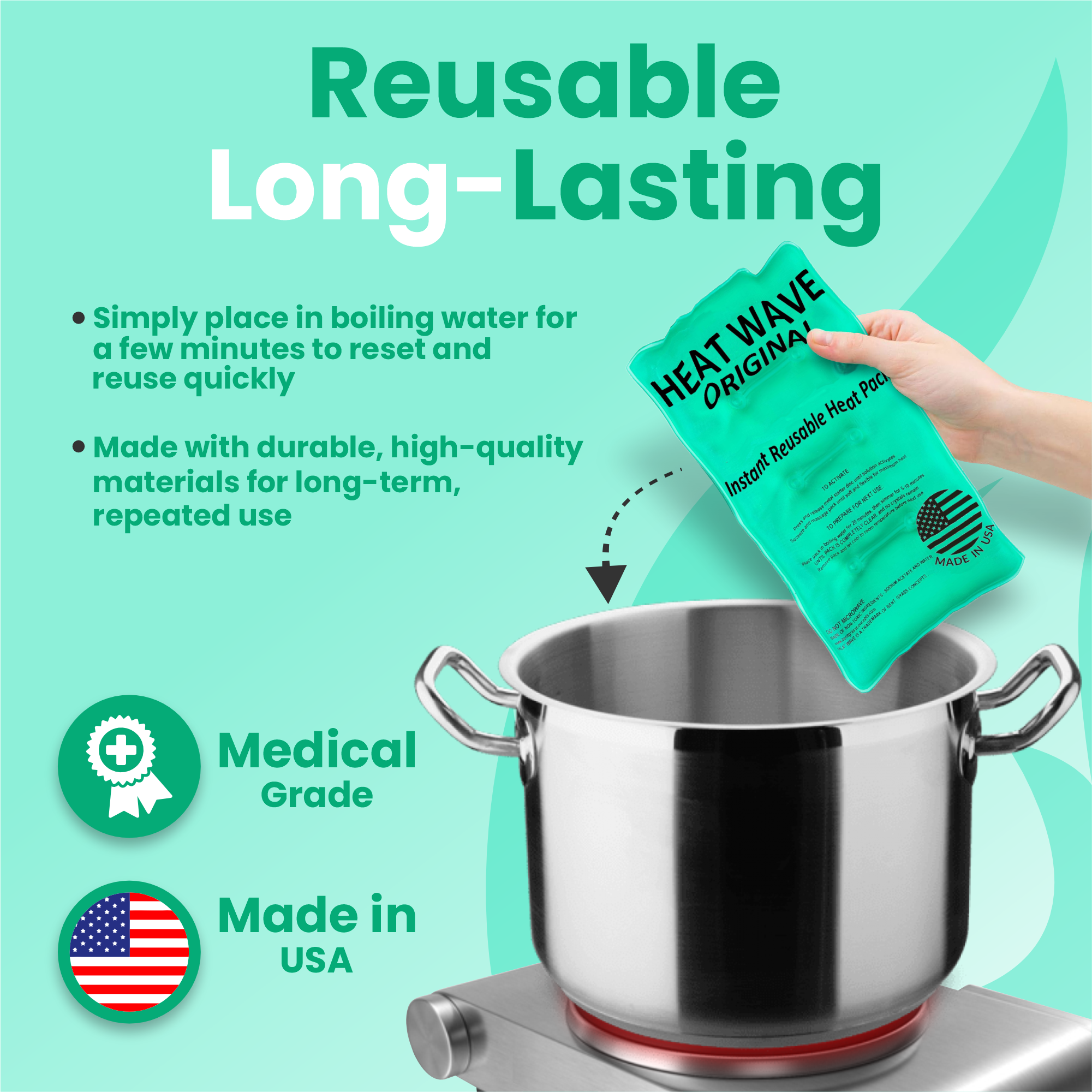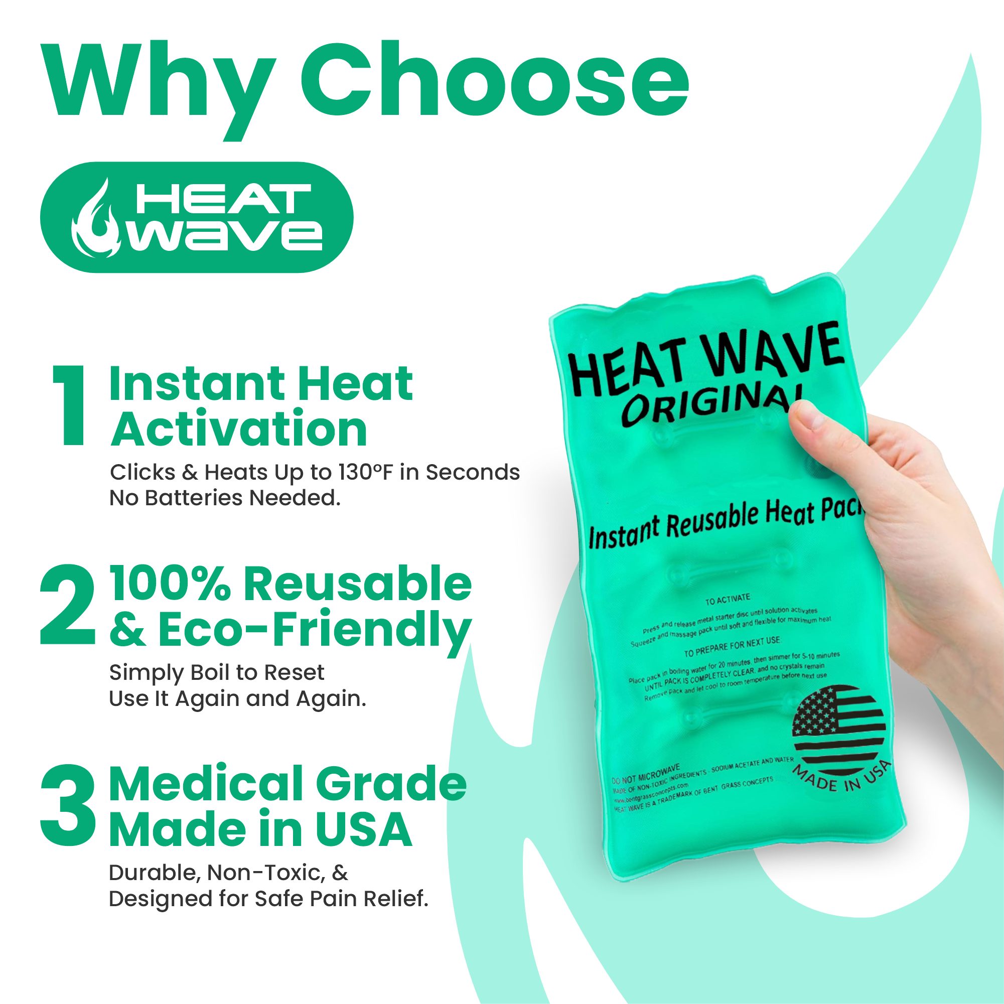 Heat Wave instant reusable hot packs are designed to offer comfort and warmth to every part of your body. Great for providing soothing heat to your lower back, knee, shoulder, wrist, ankle, and lots of other places; if you need relief from achy muscles, Heat Wave can help.